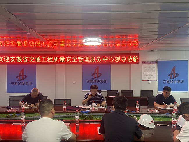 6月9日下午,安徽省交通工程質量安全管理服務中心黨委委員、副主任熊偉,安全管理處處長王樂遠一行赴阜淮高速FH-03標開展調研指導,阜南縣交通局總工程師李海濤等相關人員參加調研。