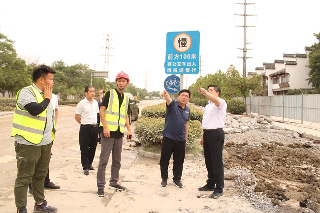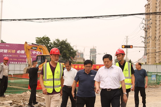趙明一行先后前往唐河路暗涵、迎賓大道污水頂管、奇石大道等施工現場,聽取了項目負責人對施工當前進度和存在問題的匯報。趙明一行對項目的施工進度和質量給予了肯定,并對下一步工作提出兩點建議:一是要科學、規范施工,搶抓晴好天氣,倒排工期,加快推進項目建設;二是抓實抓牢安全生產,防微杜漸,切實做到安全質量與進度形象并重。