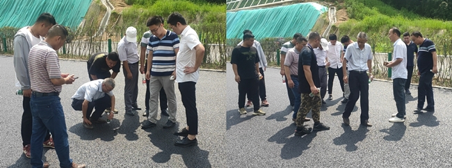 陸學元博士對現場攤鋪、平整度、現場滲水、表面外觀等給予了肯定,對加強道路下面層原材料控制,調整優化攤鋪機布料、葉片等方面提出指導意見。