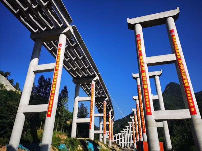 03標(biāo)段項(xiàng)目部相較于其他五個(gè)標(biāo)段晚1年進(jìn)場,與五家央企同臺競技,倍感壓力。項(xiàng)目全體員工秉承著“特別能吃苦、特別能戰(zhàn)斗”的優(yōu)良作風(fēng),在2021年上半年捷報(bào)頻傳,從首條隧道貫通到1#梁場首片梁板澆筑,再到西溝大橋?qū)崿F(xiàn)半幅貫通,特別是2座橋梁同時(shí)進(jìn)行梁板架設(shè),成為欒盧高速全線項(xiàng)目首片梁板架設(shè)的標(biāo)段。03標(biāo)項(xiàng)目還創(chuàng)造了“5最”成績:進(jìn)場最晚、梁場建設(shè)啟動最早、梁場投入使用最早、梁板預(yù)制最早,梁板架設(shè)最早。項(xiàng)目部一系列的努力換來了業(yè)主單位和項(xiàng)目公司的高度認(rèn)可。