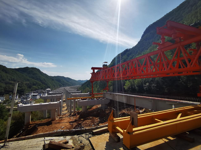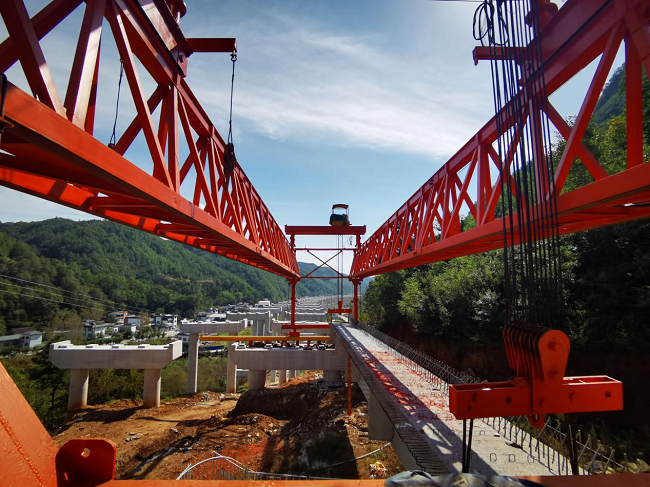 9月21日是中國傳統的中秋佳節,欒盧高速03標項目秋林特大橋首片梁板成功架設。