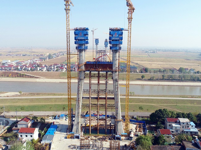 11月4日至8日,G347PPP楊灣河特大橋14#、15#墩上橫梁首次澆筑完成,標(biāo)志著主塔順利進(jìn)入上塔柱施工階段,塔身進(jìn)入施工沖刺階段。