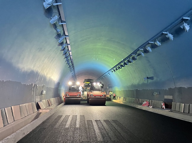 此外,蕪黃路面02標全線瀝青路面攤鋪工作也順利收官。為確保高質量、高標準完成全線瀝青攤鋪工作,項目部在瀝青面層每次攤鋪施工前,組織技術人員對機械操作人員、現場管理人員進行了詳細的技術培訓和安全交底,在攤鋪過程中,項目全員分工明確、各司其職,各部門對施工各環節進行全程監控,并嚴格按照施工規范要求進行攤鋪作業,確保了瀝青攤鋪工作的優質、高效。