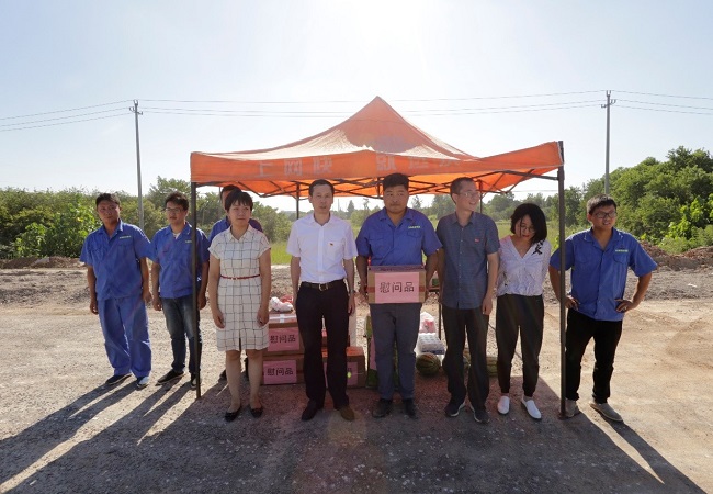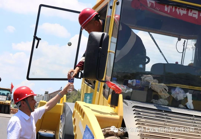 盛董事長向正在作業的職工表達親切關懷與問候,并將綠豆、紅糖、十滴水、風油精、藿香正氣口服液等防暑降溫慰問品親自送到一線職工手中。在慰問調研途中,盛董事長聽取了分公司關于當前工程項目建設、夏季防暑降溫工作開展情況的匯報,詳細了解一線職工的生產生活情況,認真聽取一線職工的意見和建議。就下一階段工作,盛董事長強調:一是加強項目管理,針對夏季施工特點,合理安排施工,確保廣德片區各項目安全可控、進度可控、質量可控,為完成工期目標和年度目標打牢基礎,向集團和廣德縣人民交上一份滿意的答卷。二是切實做好防暑降溫各項工作,項目部要合理安排作息時間,加強后勤保障和應急措施,保證高溫作業條件下一線職工的安全和健康。