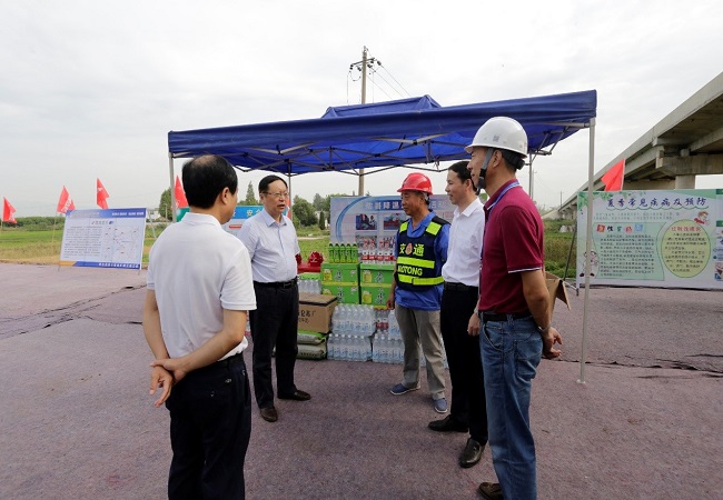 7月26日上午,省交控集團黨委副書記、總經(jīng)理錢東升在公司黨委書記、董事長、總經(jīng)理盛明宏、交控集團建設(shè)管理部部長蘇新國的陪同下,前往蕪合改擴建03標(biāo)“送清涼”。公司總經(jīng)理助理、工程管理部經(jīng)理盧軍球以及項目辦、蕪合改擴建03標(biāo)相關(guān)負責(zé)同志參加慰問活動。