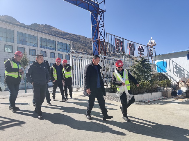 譚修生一行來到項目部,與項目職工親切交談,并為他們送上新年慰問品。隨后,譚修生一行參觀了項目部會議室、職工書屋、食堂等區域,在聽取了項目負責人圍繞項目概況、建設進度、疫情防控等工作情況的詳細匯報后,對項目精細化管理等各項工作表示充分的肯定,并要求項目部全方位做好各項服務保障工作,確保藏歷新年期間安全生產。