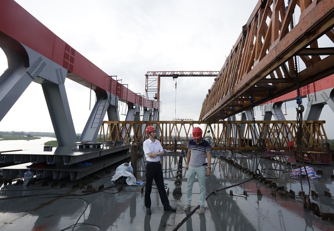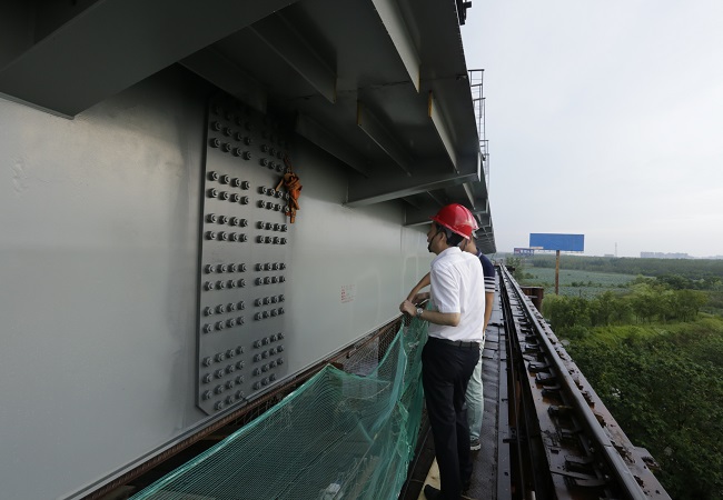隨后,在項目負責人的陪同下,盛董事長登上中派河大橋,查看大橋建設情況。項目負責人匯報了中派河大橋當前工程進度、質量、安全管理、技術創新以及下一階段工作計劃。在聽取匯報后,盛董事長表示,中派河大橋使用了大量新工藝、新技術、新材料,社會影響力大,各界關注度高,項目部一定要緊抓質量、安全不放松,同時注重技術創新、經驗總結、綠色環保,把中派河大橋打造成為行業內的精品工程,內強素質、外樹品牌,為路橋集團增光添彩。