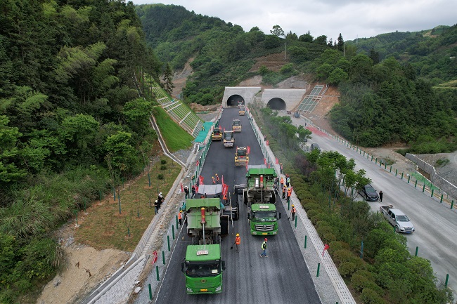 5月11日上午9點08分,伴隨著機器的轟鳴聲,黃千高速02標路面瀝青試驗段攤鋪順利完成,項目全面進入瀝青攤鋪階段,實現了施工工序的大轉換。