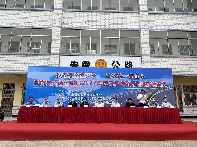 阜陽市阜南縣人民政府辦公室李蔚主任出席啟動儀式并作動員講話。阜南縣交通運輸局局長張濤主持演練活動。現場總指揮阜南縣交通運輸局副局長張尚武作演練總結。