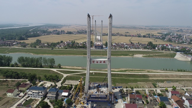 6月1日,G347PPP項目楊灣河特大橋主塔15#墩首個掛籃懸澆段澆筑完成。