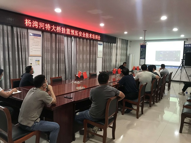 為保障掛籃懸澆段澆筑能夠高效保質完成,項目部精心籌劃、多方協調,在掛籃設備進場后,積極與掛籃廠家對接。針對掛籃設計施工方案,項目部召開專題研討會仔細推敲、反復論證,結合施工現場實際情況,不斷優化施工方案,確保方案切實可行。在掛籃設備安裝時,項目部嚴格做到技術交底,突出重點、落實責任,確保澆筑施工安全有序、質量達標。澆筑前,項目部先后組織多次安全驗收工作,重點對掛籃結構受力及其他安裝細節進行檢查,通過“檢查-整改-再檢查”的思路完成混凝土澆筑前的安全驗收工作,此次澆筑共歷時10多個小時完成,且一次性通過驗收。