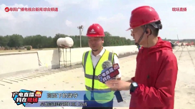 2022年6月21日,阜陽廣播電視臺赴安徽路橋集團阜淮高速03標項目進行采訪,重點報道廣大建設者們為保證項目工期如期完成,戰高溫、迎“烤”驗,堅守崗位,用汗水詮釋責任。