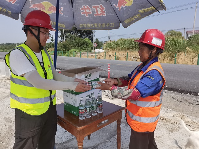 在G530查橋至牛磯段一級公路建設工程2標段施工現場,機械轟鳴、彩旗飄揚、車輛循環往返。為了實現預定通車目標,項目部主動調整施工時間和作業方式,采取“干兩頭、休中間”的工作模式,實行錯峰施工,避開高溫時段。同時,在施工現場搭設臨時休息棚、設置飲水區,提供降溫飲品和防暑藥品,做好日常防護,避免工人中暑事件的發生,切實保障一線施工人員的生命健康安全。此外,為進一步落實防暑降溫措施,嚴防高溫中暑和其他各類安全事故的發生,項目部專門對作業班組開展了防暑降溫及高溫中暑急救方法培訓,切實提高施工人員自我保護意識和應急處置能力。