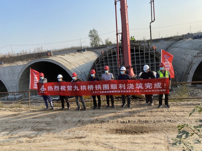 10月16日下午,隨著最后一車混凝土泵入,路橋集團(tuán)合廬產(chǎn)業(yè)新城2標(biāo)項(xiàng)目九拱橋橋梁拱圈順利完成澆筑。