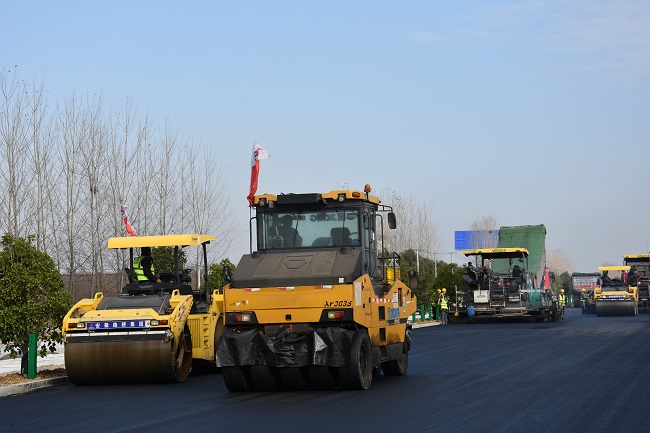 12月15日下午18:00,隨著攤鋪機將最后一車瀝青混合料攤鋪、碾壓完成,G312快速路項目主線瀝青路面全部攤鋪完成,項目建設進入全面沖刺階段。
