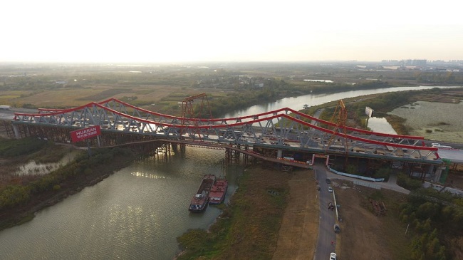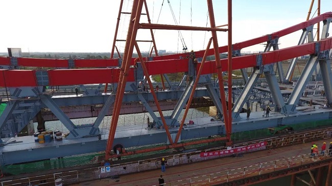 2018年11月2日下15點48分,中派河特大橋最后一個桁架桿件吊裝成功,標志著合安改擴建項目中派河特大橋順利合攏。