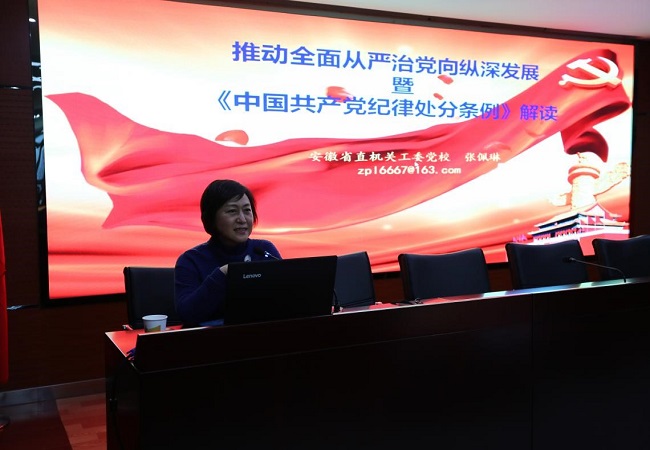 此次培訓(xùn)雖然時間短,但是課程內(nèi)容安排豐富、緊湊,省直工委講師圍繞基層黨組織標(biāo)準(zhǔn)化建設(shè),提升支部建設(shè)質(zhì)量水平,根據(jù)基層支部日常工作中發(fā)現(xiàn)的問題、支部建設(shè)需要解決的困難,重點講解了黨組織選舉、黨員發(fā)展、組織生活開展、黨費收繳、使用和管理等內(nèi)容,為參會人員系統(tǒng)梳理了支部建設(shè)的各項基礎(chǔ)性工作。省委黨校講師以《推動全面從嚴(yán)治黨向縱深發(fā)展--淺析新修訂條例》為主題,從新修訂《條例》的重大意義、主要內(nèi)容、宣貫落實等方面,結(jié)合具體案例進行了深入的分析和解讀。