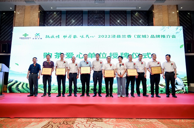 傾情傾力伸援手,消費幫扶助振興。7月30日,2022年涇縣蘭香(宣城)品牌推介會暨“消費助茶農、幫扶暖人心”購茶愛心單位授牌儀式成功舉行。安徽路橋集團工會主席邵康、五分公司黨支部書記朱大俊代表公司出席本次愛心活動。