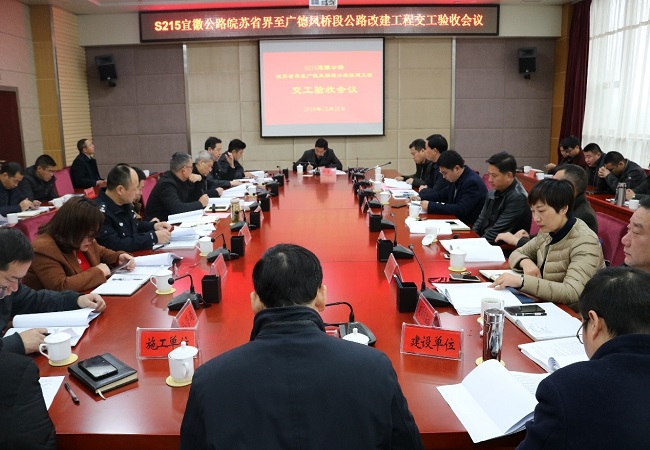 在隨后召開的驗收會上,建設、施工、監理、設計、檢測單位及交工驗收工作組依次進行了工作情況匯報,交工驗收工作組審議了合同段交工驗收證書和交工驗收報告。經工作組合議,與會人員認為S215宜徽公路皖蘇省界至廣德鳳橋段公路改建工程(PPP)項目整體工程質量等各方面滿足設計和規范要求,內業資料齊全,同意通過交工驗收。