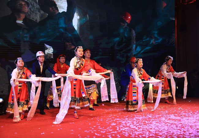 晚會(huì)在酷炫的燈光秀和熱烈振奮的鼓舞中拉開(kāi)帷幕。一段滿懷激情的相聲《勞動(dòng)號(hào)子》道出了建筑工地在黨的富民政策引領(lǐng)和關(guān)懷下的新生活、新局面;極具時(shí)尚、科技感的《活力青春》《光影秀》《魔術(shù)》閃耀登場(chǎng),展現(xiàn)了路橋集團(tuán)新青年的無(wú)限活力和時(shí)尚動(dòng)感;三句半《說(shuō)說(shuō)我們的路橋集團(tuán)》詼諧幽默,引來(lái)陣陣叫好聲;從撰稿到視頻背景再到排練,公司領(lǐng)導(dǎo)親自把關(guān),機(jī)關(guān)部門負(fù)責(zé)人和職工代表合作帶來(lái)的朗誦《筑路人》道出了公司二十五年的風(fēng)雨和成長(zhǎng),道出了奉獻(xiàn)在路橋一線筑路人的辛苦和輝煌,將晚會(huì)氛圍推向高潮;舞蹈《風(fēng)箏誤》舞姿輕盈,溫婉柔情,極具藝術(shù)與觀賞;京韻大鼓《重整河山待后生》、合唱《國(guó)家》、歌伴舞《不忘初心》氣勢(shì)恢宏,正氣凜然,展現(xiàn)出路橋集團(tuán)人的家國(guó)情懷;根據(jù)公司項(xiàng)目實(shí)際改編的情景劇《工地情歌》時(shí)而詼諧幽默時(shí)而感人落淚,引起廣大職工的強(qiáng)烈共鳴;歌舞短劇《藏漢一家親 共筑中國(guó)夢(mèng)》帶來(lái)了西藏新瑞公司的熱情祝福和美好祈愿;最后整場(chǎng)晚會(huì)在《難忘今宵》的優(yōu)美樂(lè)曲中圓滿結(jié)束。