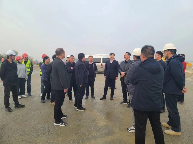 周天斌一行深入項(xiàng)目施工現(xiàn)場(chǎng),聽(tīng)取了項(xiàng)目負(fù)責(zé)人關(guān)于項(xiàng)目概況、建設(shè)進(jìn)展情況、安全文明施工等方面的匯報(bào)。
