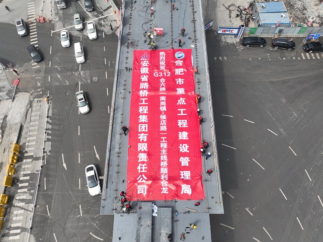 2023年3月30日上午,伴隨著G312合六路(南崗鎮-侯店路)工程南側主線橋第六聯大跨徑鋼箱梁的順利合龍,標志著G312合六路(南崗鎮-侯店路)工程主線橋梁結構全線貫通,工程進展邁入新節點,也為主線橋梁最終通車奠定了基礎。