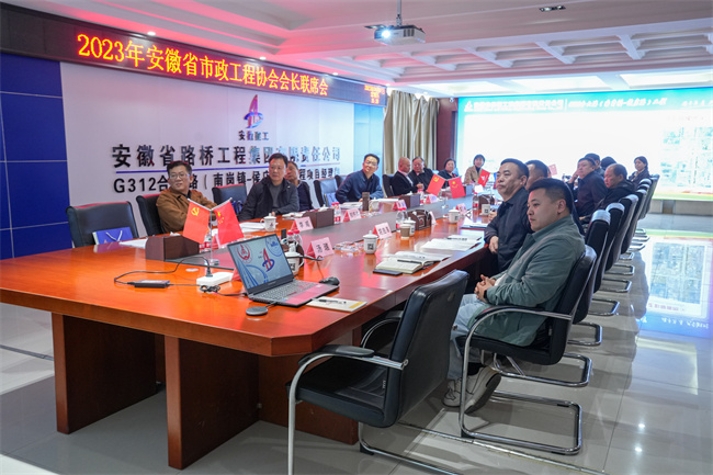 會議由省市政工程協會會長王斌主持,公司黨委書記、董事長任杰致歡迎辭。會上,王斌會長通報中國市政工程協會市政工作座談會會議精神,審定2022年全省優秀市政企業、優秀建造師(項目經理)評選情況,2022年度安徽市政工程優質獎評選結果(省外)及新會員入會申請,聽取關于2023年協會會員大會籌備情況的匯報。