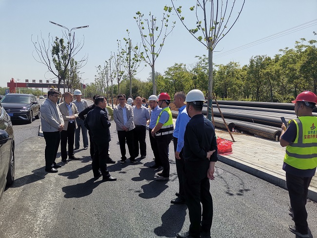 朱宏一行分別查看了項目兩側的輔路、人行道、綠化、機電等附屬工程施工現場,詳細了解了項目目前的生產進度、剩余工程、質量安全環保等施工情況。朱宏強調,施工單位要進一步加快項目建設進度,做好人行道外兩側銜接,做到開局要快、過程要穩、收尾要狠,爭取在月底順利通過交工驗收。
