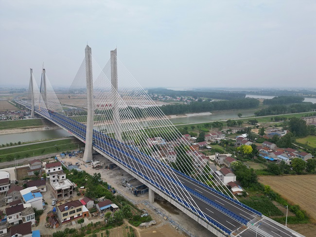 望江至宿松段一級公路項目是G347在安徽省境內最后的“斷頭路”,是省、市、縣交通重點工程建設項目。項目起點位于G347安九一期工程安慶至望江段終點(望江縣城雷池大道與西外環相交處),終點位于望江與宿松交界G347順接,道路全長13.248公里,總投資8.8億元,按雙向四車道一級公路標準建設,設計速度為每小時80公里。其中項目控制性工程望江大橋,全長1322米,由主橋685米雙塔雙索面預應力混凝土斜拉橋與637米的南北引橋組成,是安徽省同類斜拉橋中的第二大跨徑橋梁,也是安徽建工集團目前承接單跨跨徑最大的橋梁工程。