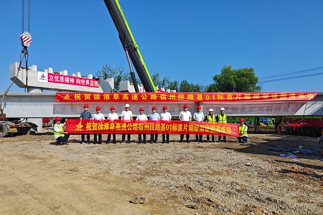 本次首片箱梁的順利架設,為后期梁板架設施工提供了寶貴的施工經驗。徐淮阜高速宿州段路基01標項目將繼續堅定信心、鼓足干勁,筑牢安全紅線,把控施工節點,全力推進項目建設,高質高效完成年度各項生產任務。