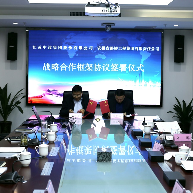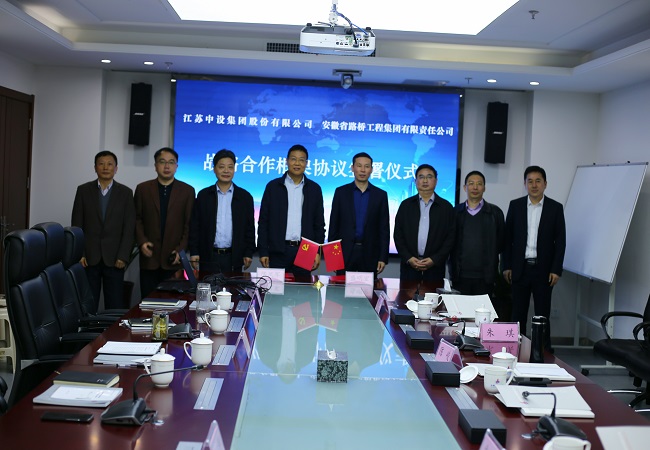 會后,盛明宏和陳鳳軍分別代表安徽路橋集團和江蘇中設集團簽訂了戰略合作框架協議。