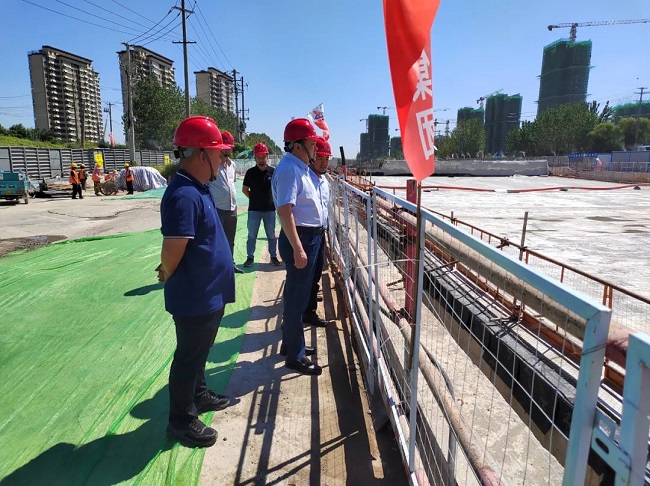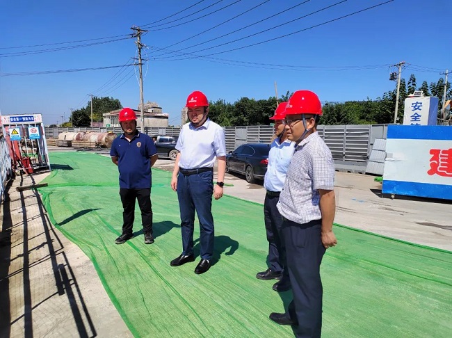 任杰一行深入項目施工現場,實地查看工程進度與安全文明施工情況,詳細聽取項目負責人關于工期計劃、安全環保、質量管控等方面工作的匯報。