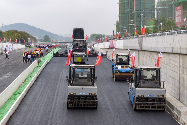 9月26日,安徽建工建設投資集團承建的G312合六路(新橋大道-侯店路)工程一標段項目西城大道下穿段瀝青面層施工引入無人攤壓技術,參加合肥市城鄉建設系統“質量月”活動的領導和專家們現場觀摩了無人攤壓機群智能施工。
