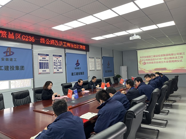 11月14日上午,中共安徽建工建設(shè)投資集團有限公司第三分公司繁昌區(qū)G236一級公路改造工程項目支部委員會成立大會暨揭牌儀式在繁昌區(qū)G236一級公路改造工程項目舉行,公司黨委副書記干戈、三分公司相關(guān)領(lǐng)導、項目部黨員等人員參加會議。