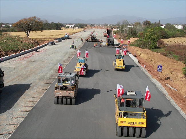 潛山G105、S237改建工程項目路面水穩底基層試驗段順利鋪筑,為路基路面工序轉換打下了堅實基礎。下一步,項目部將堅持目標導向,狠抓施工進度,嚴抓質量管控,項目全體員工將繼續保持昂揚的斗志與飽滿的激情,緊盯時間節點,全力以赴掀起路面施工高潮,確保完成年度目標任務。