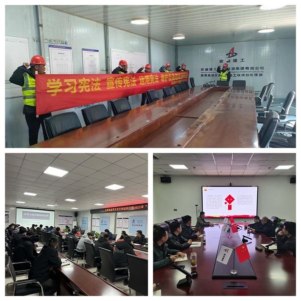 “整體聯動”,主題學習會增強法治觀念。公司總部、子分公司及所屬項目部以主題學習會形式緊扣重點宣傳內容,集中開展了以習近平法治思想、黨的二十大精神、《中華人民共和國憲法》《中華人民共和國民法典》等為內容的學習活動,使員工親身零距離觸摸憲法、感悟法律,更深層地了解法律知識的重要性,提高員工的防范風險意識,增強員工的法治觀念和依法辦事能力。