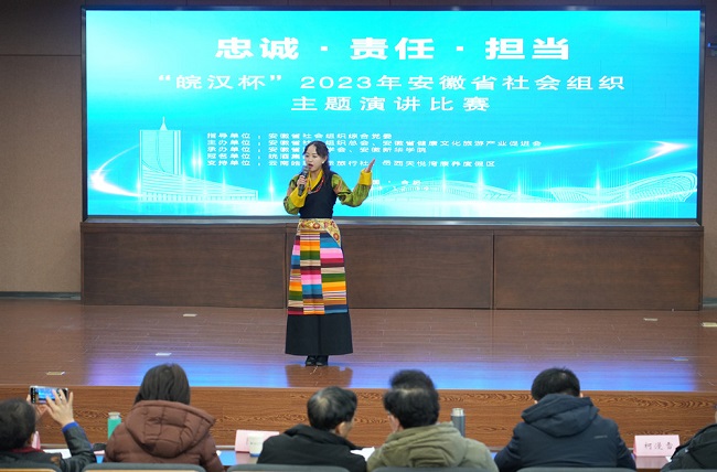 此次比賽由安徽省社會組織綜合黨委指導,安徽省社會組織總會、安徽省健康文化旅游產業促進會主辦,旨在深入學習宣傳貫徹習近平新時代中國特色社會主義思想和黨的二十大精神,牢牢把握主題教育總要求,以黨建推進規范辦會、助力產業發展、貢獻社會組織力量。決賽現場,旦增旺姆以《走進西藏,建設西藏》為題,緊扣為西藏地區的交通建設發展作出的貢獻這一主題,講述了建工建投集團在努力開拓西藏市場、大力吸收西藏籍高校大學生就業、帶動地方產業發展和助農增收等方面的生動事例、感人事跡。
