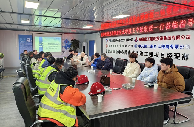 12月27日上午,安徽交通職業技術學院道路與鐵道工程教研室主任、土木工程系副主任王守勝副教授及學生一行走進合肥東部新中心障山路道路工程施工項目進行觀摩交流。