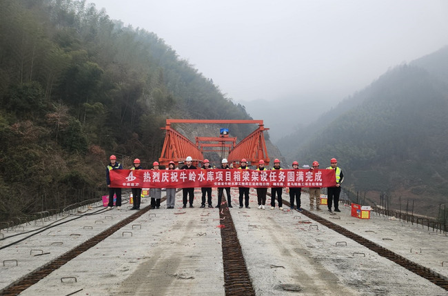 1月21日下午,隨著長村橋最后一片長20米,重70噸的箱梁穩穩落下,牛嶺水庫項目箱梁架設任務圓滿完成,為后續全線通車奠定了堅實的基礎。