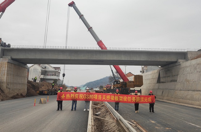 1月26日,隨著吊車長長的“手臂”將預制箱梁精準平穩地放在橋墩上,銅陵G330項目天橋工程順利完成了預制主體箱梁架設,標志著該項目建設施工進入全面收尾階段。