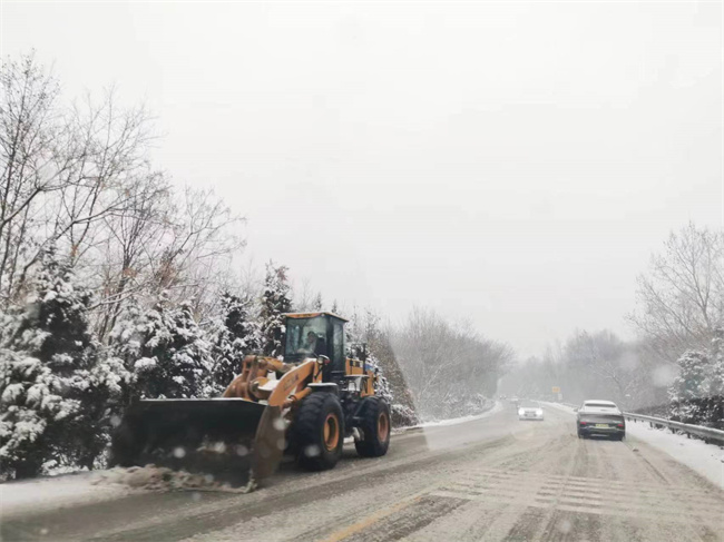 雪情就是命令,保暢就是責任,G104明光段一級公路改建工程二標段項目部提前備好相關機械和材料,在道路出現積雪和結冰現象后,立即啟動緊急預案,組織全體人員,迅速開展主干道、橋面、坡道、車流量較大區域等重點路段鏟雪除冰工作,采取撒布融雪劑以及施工機械配合等多種方式進行緊急除雪除冰作業,一線人員在暴雪寒風中,堅持做到“以雪為令,隨降隨清,雪停路凈”,確保來往通行安全。