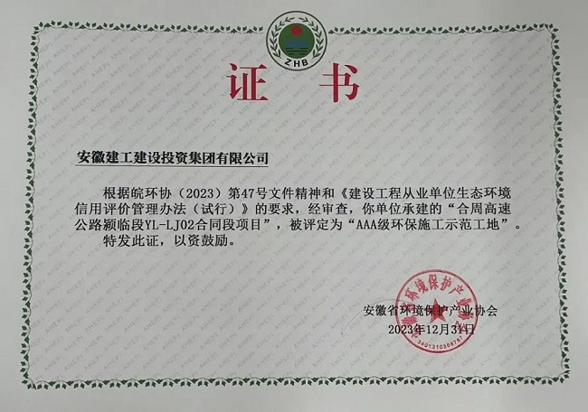 合廬項目獲得省安全文明示范工地,S244項目獲得省級平安工程,舒城城西項目獲得六安市建筑施工安全生產(chǎn)標準化示范工地及集團公司安全文明標準化工地,合周項目榮獲安徽省AAA及環(huán)保施工示范工地。