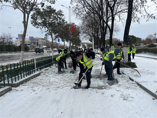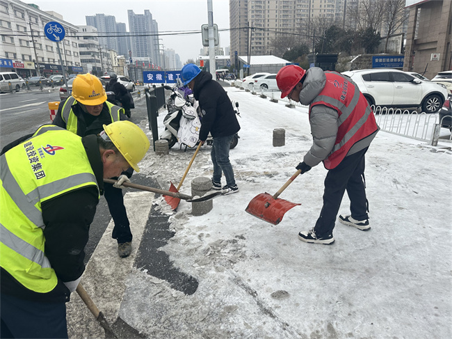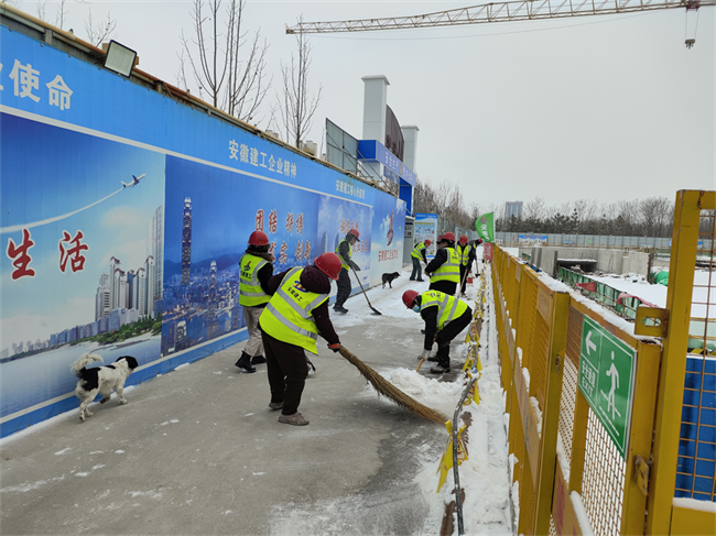 除了安徽省內(nèi),公司所屬山東德州天衢項(xiàng)目也積極發(fā)動(dòng)項(xiàng)目班子及普通員工共15人,使用鐵鍬、掃把、參與駐地及施工現(xiàn)場(chǎng)除雪活動(dòng),保障過(guò)往行人的出行安全。