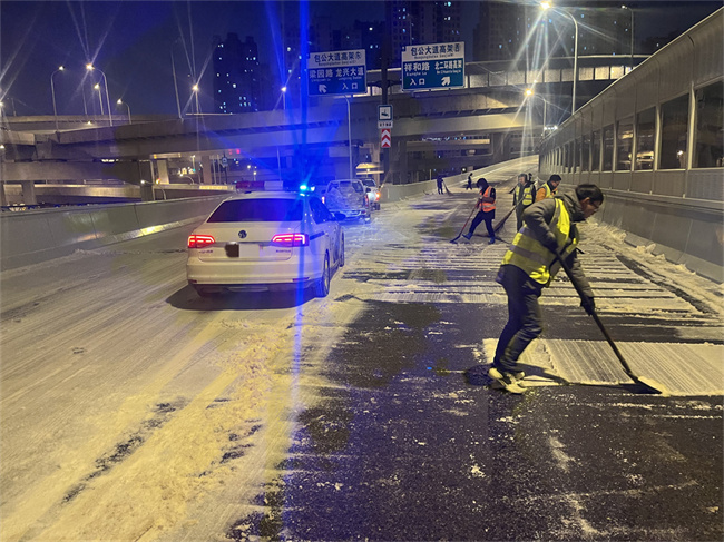 為保障廣大司乘人員安全、暢通的交通環(huán)境,2月20日至今,包公大道-3標(biāo)項(xiàng)目持續(xù)關(guān)注降雪及路面結(jié)冰情況,階段性組織管理人員使用鐵鍬、掃把、工業(yè)鹽等除雪工具,對(duì)橋頭集路主線及立交互通匝道進(jìn)行撒鹽除雪作業(yè),防止橋面積雪結(jié)冰,以確保橋面通行安全。