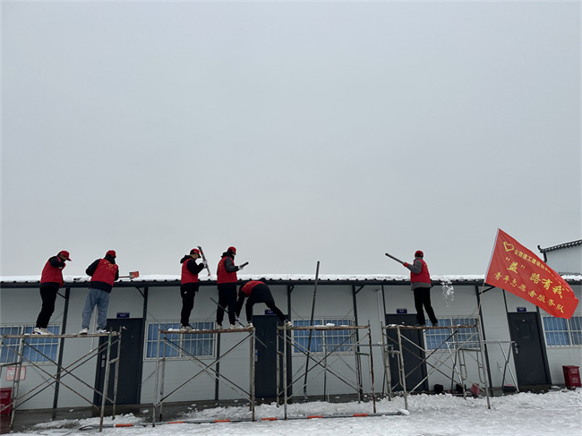 合周高速潁臨段YL-LJ02標(biāo)志愿者們包片行動(dòng),就近上高速,以“機(jī)械為主,人工為輔”的作業(yè)方式與路政、交警等部門(mén)人員協(xié)同作戰(zhàn),積極消除道路安全隱患。同時(shí),在項(xiàng)目駐地使用融雪劑、鐵鍬等工具,對(duì)項(xiàng)目住宿區(qū)、食堂等各區(qū)域屋頂、地面進(jìn)行了全面清掃,為項(xiàng)目員工提供了一個(gè)安全的工作環(huán)境。