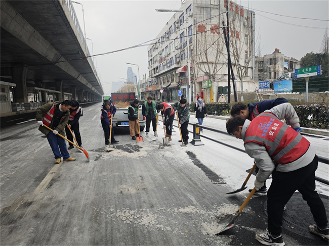 銅陵G330項(xiàng)目部扎實(shí)做好低溫、降雪天氣防范應(yīng)對(duì)工作,組織員工開(kāi)展積雪清掃工作。項(xiàng)目部在施工路段拋灑融雪劑,管理人員紛紛拿起鐵鍬和除雪鏟有條不紊的掃雪、鏟冰、融冰,采取了一系列措施清理道路周圍積雪,他們不畏嚴(yán)寒、緊密配合,最終清理出一條“安全通道”。