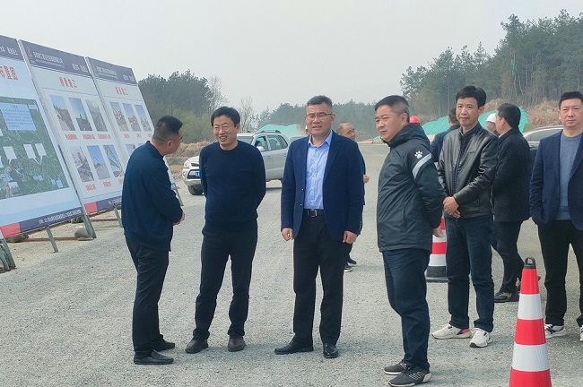 王國林一行深入項目施工現場實地查看項目進展情況,詳細聽取了關于項目施工進度、征地拆遷、質量管控、安全環保等方面的匯報。