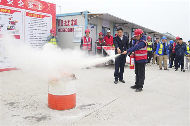 為提高項目一線人員消防安全意識和應急處置能力,4月13日上午,合肥未來大科學城在建道路項目13家參建單位在建工建投承建的科學島北路等4條道路工程項目現(xiàn)場集中開展消防安全培訓及應急演練活動。本次活動由合肥濱湖科學城管理委員會指導,合肥市濱湖新區(qū)建設投資有限公司主辦,安徽建工建設投資集團有限公司協(xié)辦。