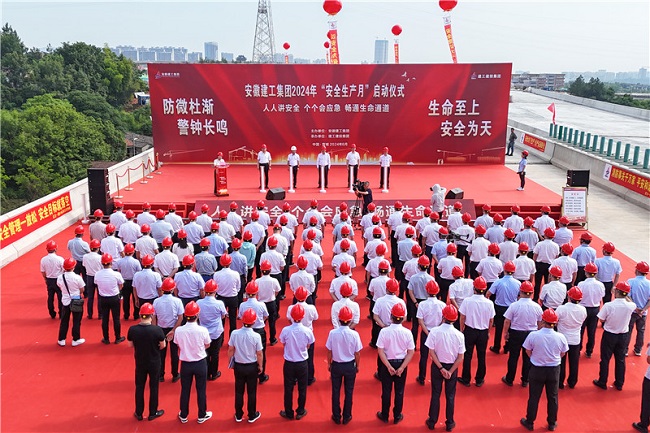 人民網(wǎng)宣城6月3日電(記者苗子健)6月3日上午,安徽建工集團(tuán)所屬15個(gè)單位主要負(fù)責(zé)人、生產(chǎn)安全分管負(fù)責(zé)人及生產(chǎn)、安全部門負(fù)責(zé)人、施工主業(yè)單位項(xiàng)目經(jīng)理代表100余人,在建工建投集團(tuán)宣涇高速一期01標(biāo)項(xiàng)目舉辦2024年“安全生產(chǎn)月”活動(dòng)啟動(dòng)儀式。