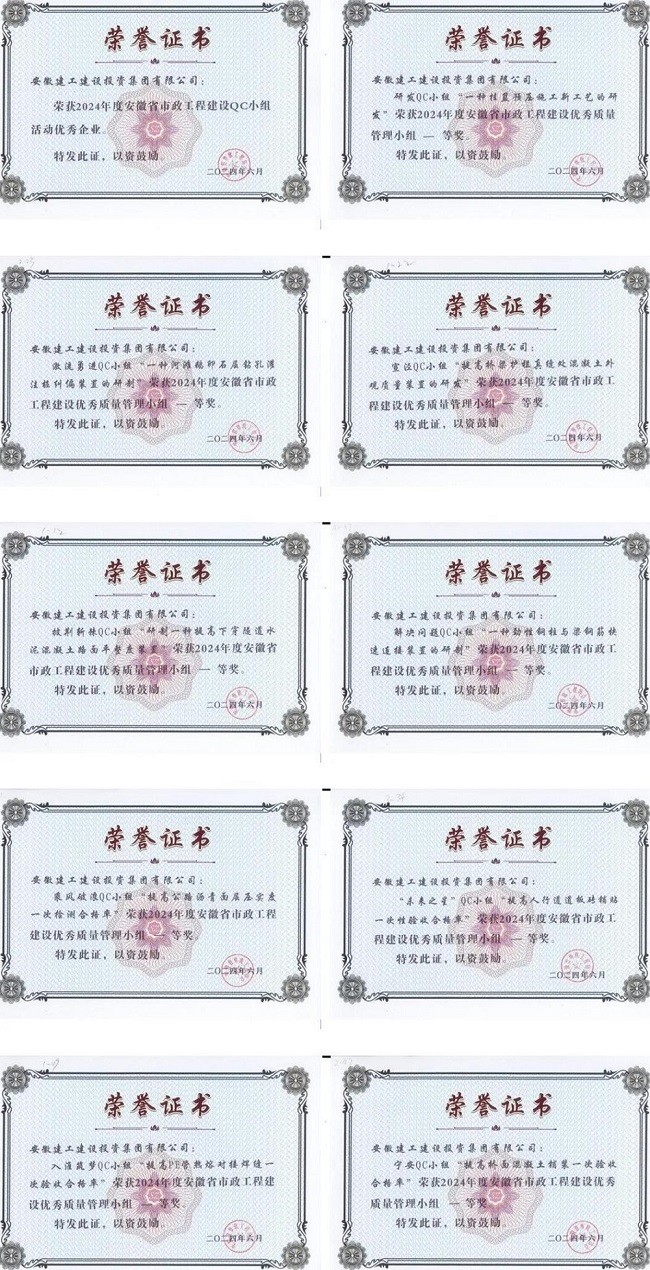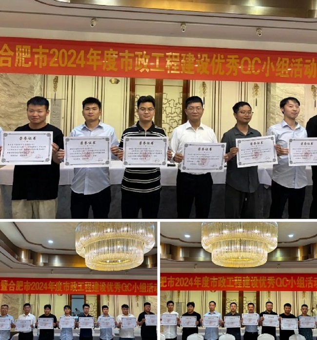 經協會專家組審核評定,建工建投集團共有34項成果在200余項QC小組活動成果中脫穎而出,分別獲得“安徽省市政工程建設優秀質量管理小組”一等獎9項,二等獎12項,三等獎13項,并連續5年榮獲“安徽省市政工程建設QC小組活動優秀企業”。